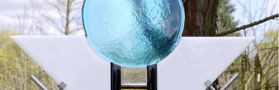 Als Holzstelen bezeichnen wir lackierte Holzsäulen mit montierten Glasarbeiten, lustiger Art - wie etwa die Fantasievögel - oder mit Edelstahlmontage.